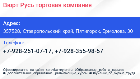 Вюрт-Русь, торговая компания по адресу 357528, Ставропольский край, Пятигорск, Ермолова, 30 в дальнейшем Организация, размещена в следующих категориях: