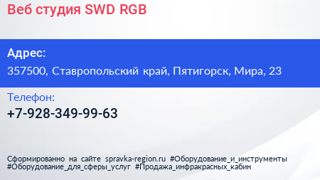 Веб-студия SWD-RGB по адресу 357500, Ставропольский край, Пятигорск, Мира, 23 в дальнейшем Организация, размещена в следующих категориях: