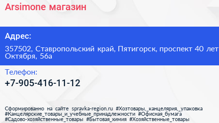 Arsimone, магазин по адресу 357502, Ставропольский край, Пятигорск, проспект 40 лет Октября, 56а в дальнейшем Организация, размещена в следующих категориях: