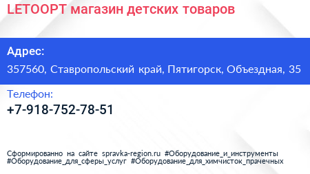 LETOOPT, магазин детских товаров по адресу 357560, Ставропольский край, Пятигорск, Объездная, 35 в дальнейшем Организация, размещена в следующих категориях: