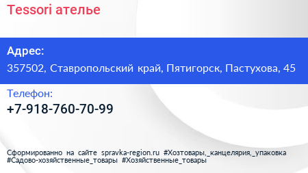 Tessori, ателье по адресу 357502, Ставропольский край, Пятигорск, Пастухова, 45 в дальнейшем Организация, размещена в следующих категориях: