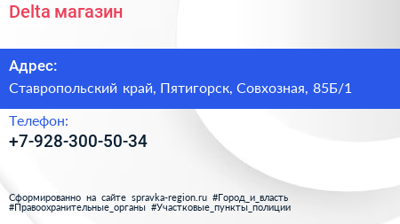 Delta, магазин по адресу Ставропольский край, Пятигорск, Совхозная, 85Б/1 в дальнейшем Организация, размещена в следующих категориях: