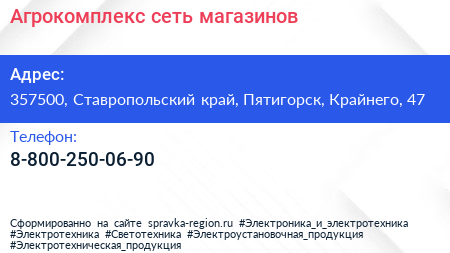 Агрокомплекс, сеть магазинов по адресу 357500, Ставропольский край, Пятигорск, Крайнего, 47 в дальнейшем Организация, размещена в следующих категориях: