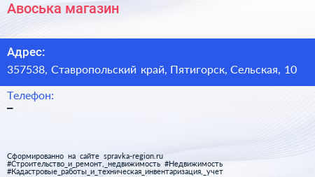 Авоська, магазин по адресу 357538, Ставропольский край, Пятигорск, Сельская, 10 в дальнейшем Организация, размещена в следующих категориях: