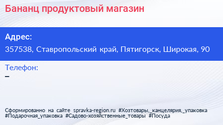 Бананц, продуктовый магазин по адресу 357538, Ставропольский край, Пятигорск, Широкая, 90 в дальнейшем Организация, размещена в следующих категориях:
