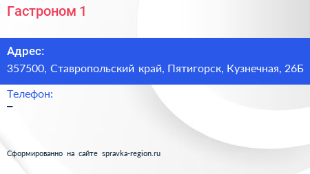 Гастроном №1 по адресу 357500, Ставропольский край, Пятигорск, Кузнечная, 26Б в дальнейшем Организация, размещена в следующих категориях: