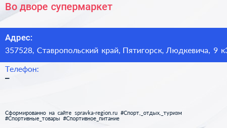 Во дворе, супермаркет по адресу 357528, Ставропольский край, Пятигорск, Людкевича, 9 к3 в дальнейшем Организация, размещена в следующих категориях: