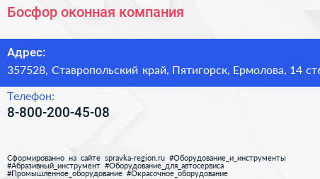 Босфор, оконная компания по адресу 357528, Ставропольский край, Пятигорск, Ермолова, 14 ст6 в дальнейшем Организация, размещена в следующих категориях: