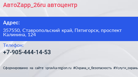 АвтоZapp_26ru, автоцентр по адресу 357550, Ставропольский край, Пятигорск, проспект Калинина, 124 в дальнейшем Организация, размещена в следующих категориях: