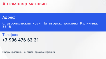 Автомаляр, магазин по адресу Ставропольский край, Пятигорск, проспект Калинина, 334Б в дальнейшем Организация, размещена в следующих категориях: