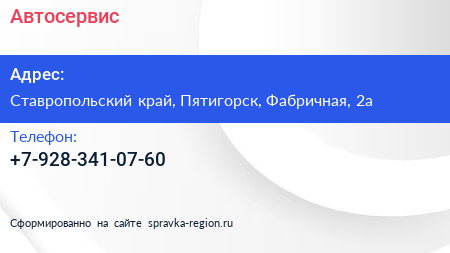 Автосервис по адресу Ставропольский край, Пятигорск, Фабричная, 2а в дальнейшем Организация, размещена в следующих категориях:
