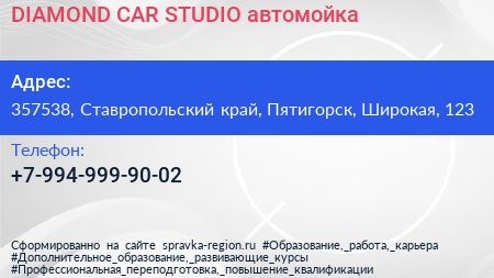 DIAMOND CAR STUDIO, автомойка по адресу 357538, Ставропольский край, Пятигорск, Широкая, 123 в дальнейшем Организация, размещена в следующих категориях: