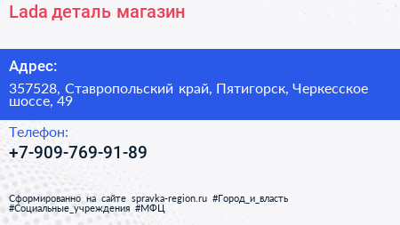 Lada деталь, магазин по адресу 357528, Ставропольский край, Пятигорск, Черкесское шоссе, 49 в дальнейшем Организация, размещена в следующих категориях: