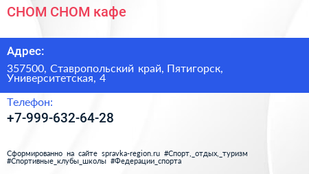 CHOM-CHOM, кафе по адресу 357500, Ставропольский край, Пятигорск, Университетская, 4 в дальнейшем Организация, размещена в следующих категориях: