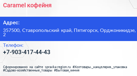 Caramel, кофейня по адресу 357500, Ставропольский край, Пятигорск, Орджоникидзе, 2 в дальнейшем Организация, размещена в следующих категориях: