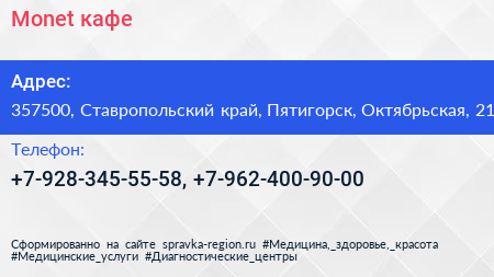 Monet, кафе по адресу 357500, Ставропольский край, Пятигорск, Октябрьская, 21 в дальнейшем Организация, размещена в следующих категориях: