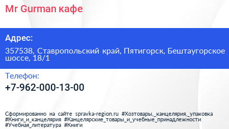 Mr.Gurman, кафе по адресу 357538, Ставропольский край, Пятигорск, Бештаугорское шоссе, 18/1 в дальнейшем Организация, размещена в следующих категориях: