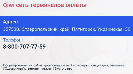 Qiwi, сеть терминалов оплаты по адресу 357538, Ставропольский край, Пятигорск, Украинская, 56 в дальнейшем Организация, размещена в следующих категориях: