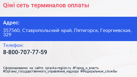 Qiwi, сеть терминалов оплаты по адресу 357560, Ставропольский край, Пятигорск, Георгиевская, 329 в дальнейшем Организация, размещена в следующих категориях: