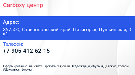 Carboxy, центр по адресу 357500, Ставропольский край, Пятигорск, Пушкинская, 3 к1 в дальнейшем Организация, размещена в следующих категориях: