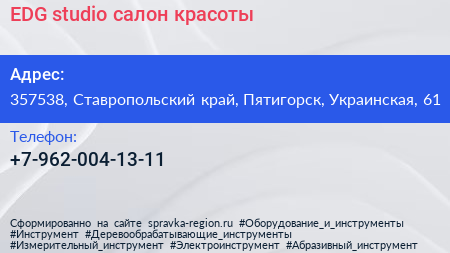 EDG studio, салон красоты по адресу 357538, Ставропольский край, Пятигорск, Украинская, 61 в дальнейшем Организация, размещена в следующих категориях: