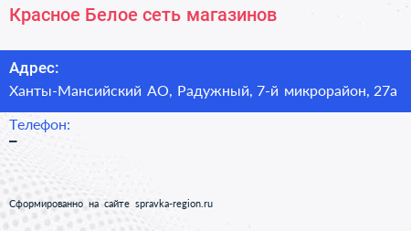 Красное & Белое, сеть магазинов по адресу Ханты-Мансийский АО, Радужный, 7-й микрорайон, 27а в дальнейшем Организация, размещена в следующих категориях: