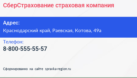 СберСтрахование, страховая компания по адресу Краснодарский край, Раевская, Котова, 49а в дальнейшем Организация, размещена в следующих категориях:
