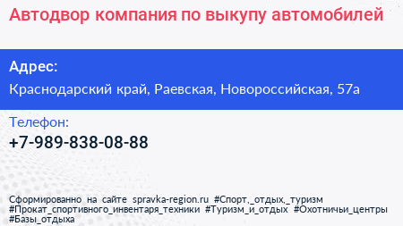 Автодвор, компания по выкупу автомобилей по адресу Краснодарский край, Раевская, Новороссийская, 57а в дальнейшем Организация, размещена в следующих категориях: