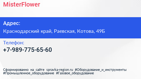 MisterFlower по адресу Краснодарский край, Раевская, Котова, 49Б в дальнейшем Организация, размещена в следующих категориях: