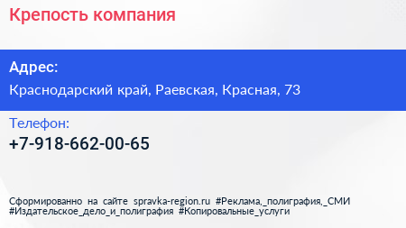 Крепость, компания по адресу Краснодарский край, Раевская, Красная, 73 в дальнейшем Организация, размещена в следующих категориях: