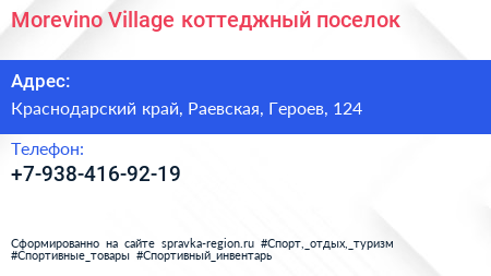 Morevino Village, коттеджный поселок по адресу Краснодарский край, Раевская, Героев, 124 в дальнейшем Организация, размещена в следующих категориях: