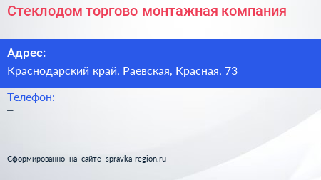 Стеклодом, торгово-монтажная компания по адресу Краснодарский край, Раевская, Красная, 73 в дальнейшем Организация, размещена в следующих категориях: