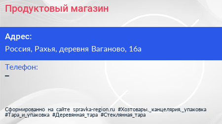 Продуктовый магазин по адресу Магазин №30, Дорога Жизни, Ваганово, Рахьинское городское поселение, Всеволожский район, Ленинградская область, Северо-Западный федеральный округ, 188674, Россия в дальнейшем Организация, размещена в следующих категориях: