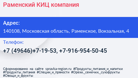 Раменский КИЦ, компания по адресу 140108, Московская область, Раменское, Вокзальная, 4 в дальнейшем Организация, размещена в следующих категориях: