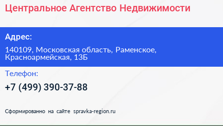 Центральное Агентство Недвижимости по адресу 140109, Московская область, Раменское, Красноармейская, 13Б в дальнейшем Организация, размещена в следующих категориях:
