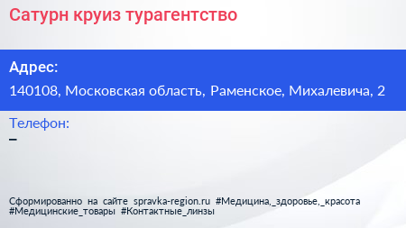 Сатурн-круиз, турагентство по адресу 140108, Московская область, Раменское, Михалевича, 2 в дальнейшем Организация, размещена в следующих категориях: