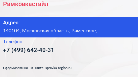 Рамковкастайл по адресу 140104, Московская область, Раменское, в дальнейшем Организация, размещена в следующих категориях: