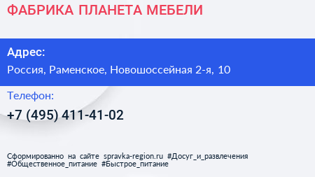 ФАБРИКА ПЛАНЕТА МЕБЕЛИ по адресу Пиломатериалы, 46К-5051, посёлок совхоза «Сафоновский», Сафоново, Раменский городской округ, Московская область, Центральный федеральный округ, 140127, Россия в дальнейшем Организация, размещена в следующих категориях: