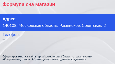 Формула сна, магазин по адресу 140108, Московская область, Раменское, Советская, 2 в дальнейшем Организация, размещена в следующих категориях: