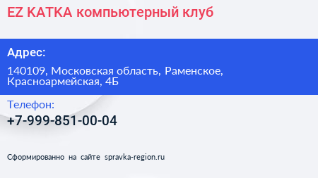EZ KATKA, компьютерный клуб по адресу 140109, Московская область, Раменское, Красноармейская, 4Б в дальнейшем Организация, размещена в следующих категориях:
