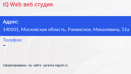 IQ-Web, веб-студия по адресу 140101, Московская область, Раменское, Михалевича, 51а в дальнейшем Организация, размещена в следующих категориях: