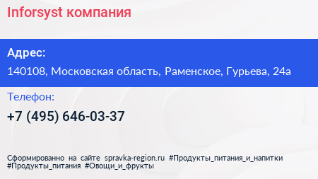 Inforsyst, компания по адресу 140108, Московская область, Раменское, Гурьева, 24а в дальнейшем Организация, размещена в следующих категориях: