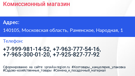 Комиссионный магазин по адресу 140105, Московская область, Раменское, Народная, 1 в дальнейшем Организация, размещена в следующих категориях:
