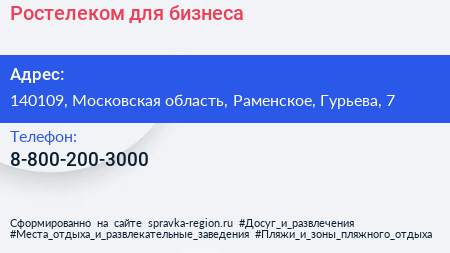 Ростелеком для бизнеса по адресу 140109, Московская область, Раменское, Гурьева, 7 в дальнейшем Организация, размещена в следующих категориях:
