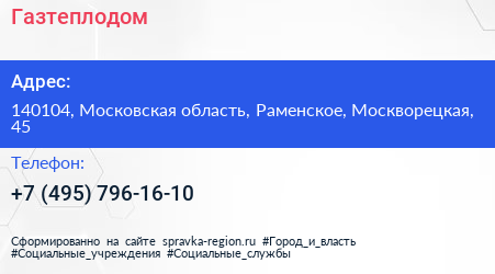 Газтеплодом по адресу 140104, Московская область, Раменское, Москворецкая, 45 в дальнейшем Организация, размещена в следующих категориях:
