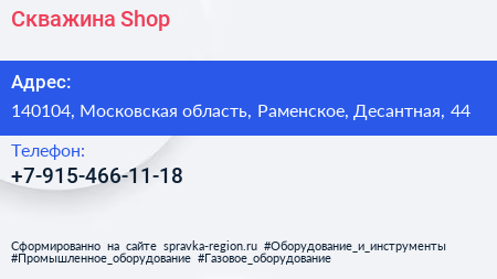 Скважина Shop по адресу 140104, Московская область, Раменское, Десантная, 44 в дальнейшем Организация, размещена в следующих категориях:
