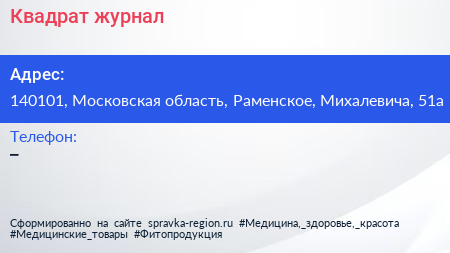 Квадрат, журнал по адресу 140101, Московская область, Раменское, Михалевича, 51а в дальнейшем Организация, размещена в следующих категориях:
