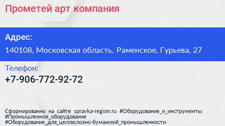Прометей, арт-компания по адресу 140108, Московская область, Раменское, Гурьева, 27 в дальнейшем Организация, размещена в следующих категориях: