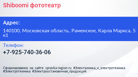 Shiboomi, фототеатр по адресу 140100, Московская область, Раменское, Карла Маркса, 5 к1 в дальнейшем Организация, размещена в следующих категориях: