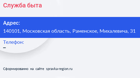 Служба быта по адресу 140101, Московская область, Раменское, Михалевича, 31 в дальнейшем Организация, размещена в следующих категориях: